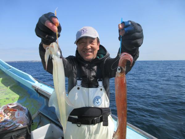 長井沖から城ヶ島西沖にヤリイカの割合が多くスルメ3割混じる。