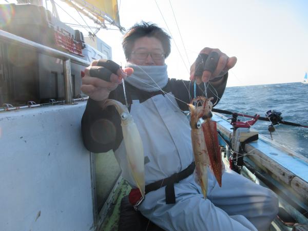長井西沖から城ヶ島西沖 ヤリイカ単発の拾い釣り最高3点掛けも後多点かけなく数が伸びません。