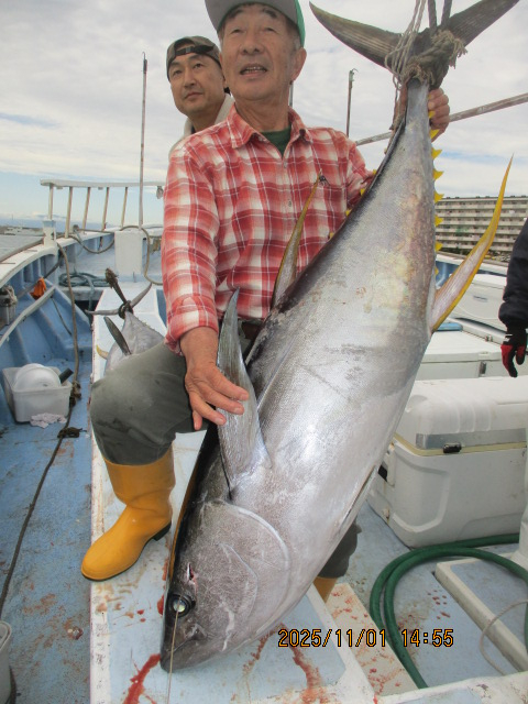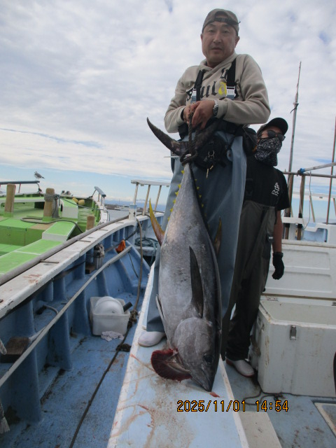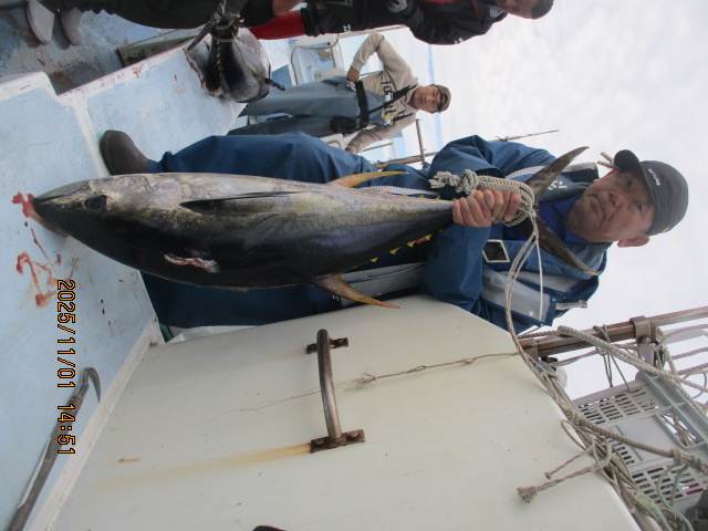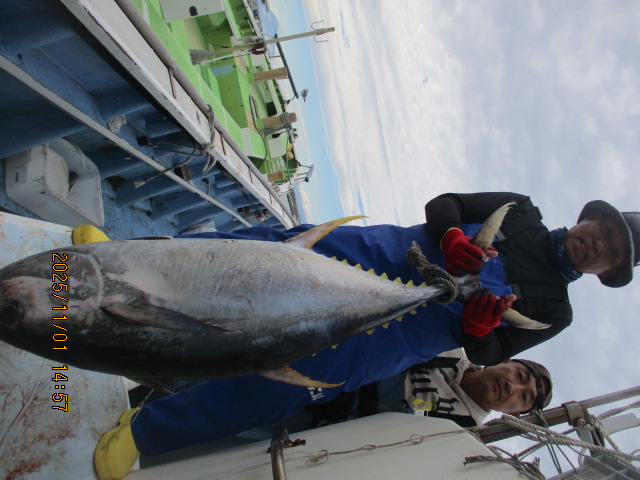 天気予報台風並みの予報はずれ凪でした 船中13人でマグロの当たり11回有りました6本釣れました、カツオ型程度です今日はカツオ食いが悪い。