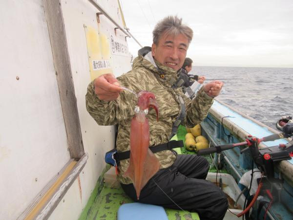 城ヶ島西沖に出ましたヤリイカ単発の拾い釣りで数も伸びません。