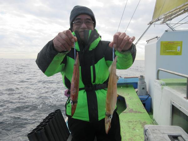 城ヶ島西沖に出ましたヤリイカ終日単発が多く数も伸びません。