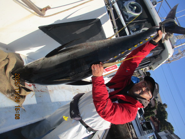 前日に比べ水温2℃上がりあさからマグロ元気が有りました8人中マグロ8回当たりましたマグロ2名が2回づつ当たりきました。