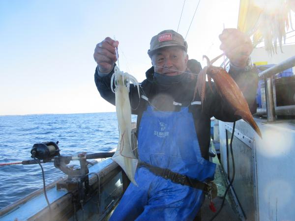 長井沖に出ましたスルメが多く終日拾い釣り最高3点掛けもヤリイカ大型も混じりました、 ヤリイカ1杯、~3杯。