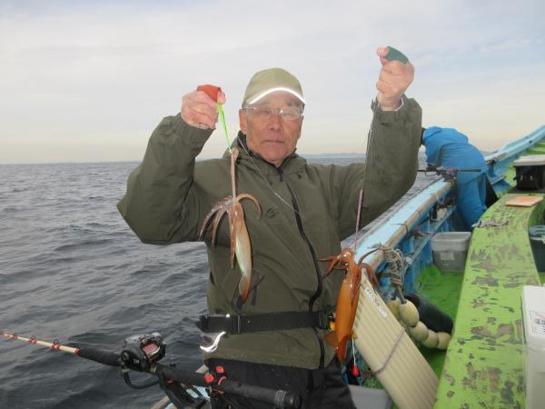 長井沖から始め途中城ヶ島西沖に移動スルメが多く終日拾い釣り、ヤリイカ1杯~2杯混じる。。