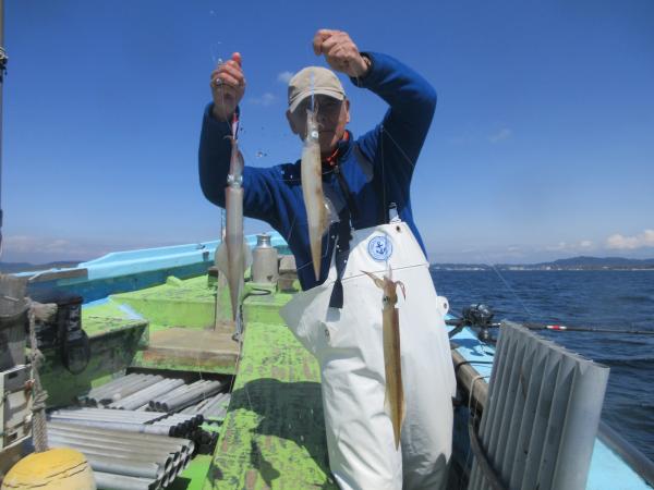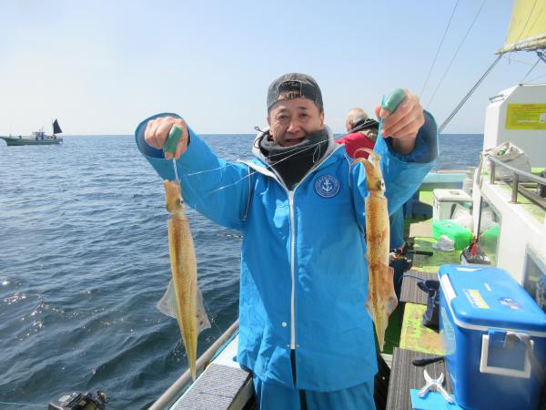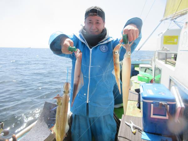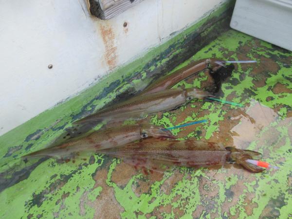 長井沖に出ました前半反応少なくちゅうばんから反応見えるとヤリイカ5点掛けも有りました。